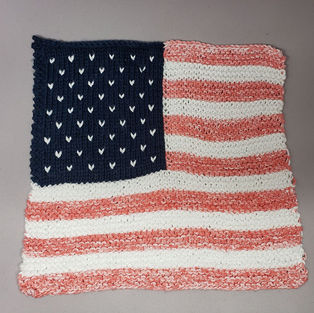 The United States Flag Dishcloth is a quick and simple knit that requires minimal attention from experienced knitters, and is a fun project for beginners.